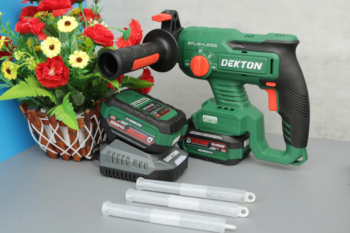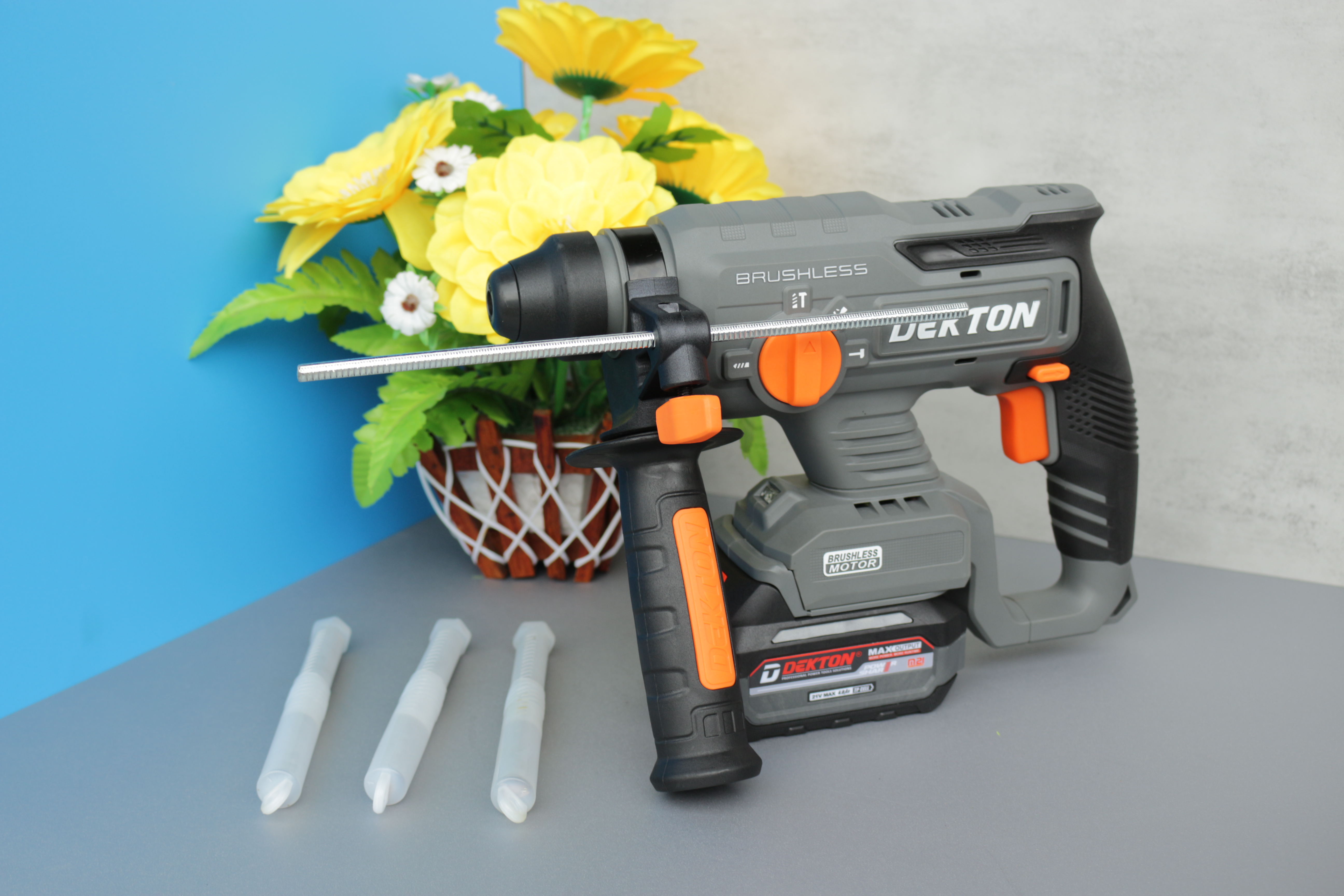 Với lực đập 2.6J, tốc độ 1350 vòng/phút và 4500 nhịp đập/phút, Dekton M21-RH2603CP là lựa chọn lý tưởng cho các công việc khoan bê tông, gỗ, và sắt. Thiết kế nhỏ gọn, động cơ không chổi than giúp máy bền, ít cần bảo trì, và giảm mệt mỏi khi sử dụng. Đèn LED tích hợp giúp làm việc hiệu quả trong môi trường thiếu sáng, rất phù hợp cho công việc sửa chữa và lắp đặt.